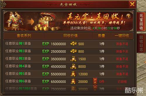 开服前七天,游戏为了回馈玩家开展回收装备送元宝。你没有听错,不是金币,不是绑元,是真的送元宝!在活动期间只要等级50级以上的玩家都可参与元宝回收,据游戏后台统计七天内累计发放3000w元宝奖励。参与元包回收,一不小心,就几十万元宝到手,岂不是美滋滋。