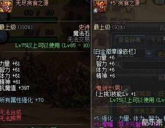最后编辑于7年前DNF升级这套史诗也是逼不得已,不是本命套胜似本命套!dnf这玩家是一个鬼泣,玩到现在就一套史诗套,而且还是一套皮甲,这下好了不升级也不行了,结果升级之后,发现比本命套还要好,只是担心后面的改版!