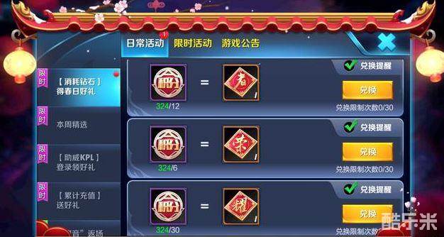 小编建议钻石数量不多的玩家可以先选择钻石夺宝,消耗3000钻石后再兑换必得皮肤/英雄碎片的春日“耀”字礼包,之后若想要王者水晶的玩家可继续抽取,而想要积攒铭文的玩家可选择抽取铭文宝箱!剩余积分兑换礼包可依据自身需求选择,比如小编先兑换“耀”字礼包后再兑换“荣”字礼包,不过30个礼包只开出了2个皮肤碎片…非酋一个!