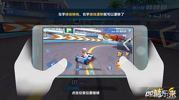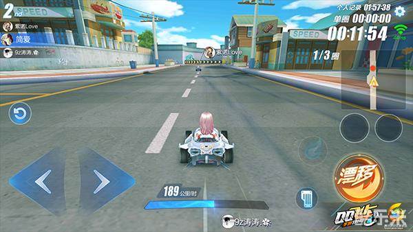 游戏推荐的操作方式是左手控制转向,右手控制漂移键、小喷键和道具键。在弯道处,墙面上会有方向标示,提示向右转的话就左手按住向右键,右手按住漂移键,漂移到一定角度后松开双手即可进入侧滑,成功完成漂移后点击小喷键,即可获得短暂的加速效果,弥补过弯道时的赛车速度损失。
