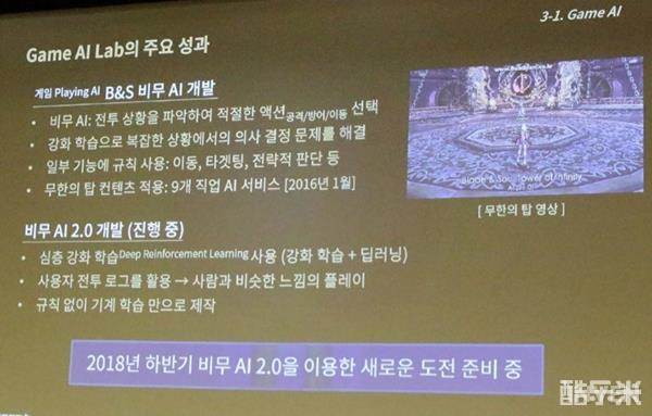 NCsoft公司AI中心负责人表示,旗下研究部门正在改善AI的性能,并通过导入玩家们的战斗数据,开发更趋于人类的比武AI。同时表示,2018年下半年将会使用比武AI2.0进行全新的挑战。