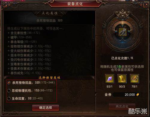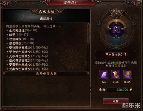 消耗一定材料进行装备点化,使其生成一条新的“未知属性”,有几率出现在装备上的特殊属性(不是每件都有哦)