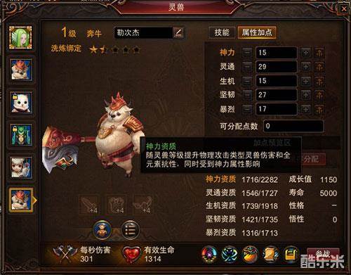 灵兽洗炼:消耗洗炼道具,可改变成长值、当前资质和资质上限的数值。