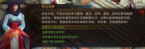 领主挑战为集体击杀领主的活动,进入帮会祭坛击杀领主获得奖励。