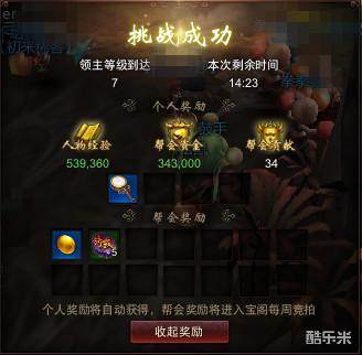 1、奖励分为个人奖励和帮会奖励。