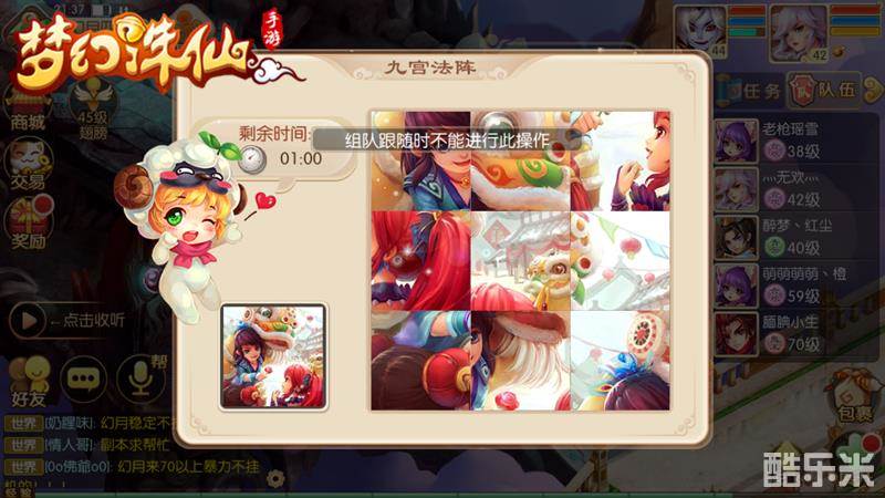 幻月洞府副本一共九层,其中包括两层答题、一层拼图、六层挑战交叉进行。在答题关卡,小伙伴们可以借助平时的积累或度娘的力量,轻松过关。在拼图关卡,系统会随机抽出一张图片,分成九格,旁边有完成图提示,只要对照边角的形状,相信很多玩家都能快速拼好。相对来说,答题是最简单的关卡,对得越多,收获的奖励也就越多,而就算是你心不在焉得了鸭蛋,也一样能收获奖励。