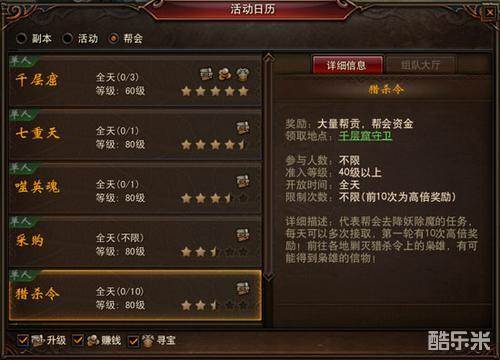 有几率获得boss掉落的同名道具猎杀令,在帮会[猎杀令兑换人]处兑换猎杀令宝箱(开启可获得帮贡)