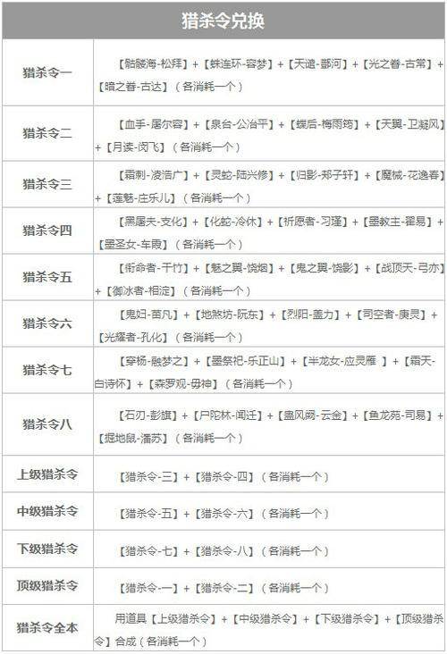 分为13种,可兑换相应的13种猎杀令宝箱: