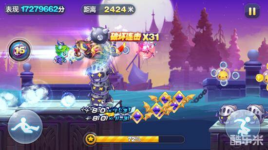 破障超级奖励流的得分玩法,常用宠物冰火之神、芙洛拉、宙斯,皆有超级奖励加成,也有破坏型技能。这种玩法主要是利用坐骑觉醒极地白熊和皇家狮鹫的非冲刺破障可获得大量高分飞星的特性。使用非冲刺角色在快进入超级奖励之前使用技能,通过把破坏获得的大量飞星带入超级奖励得分。