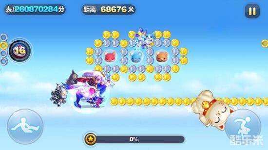 还有些比较另类的精灵,如选用武士喵,在世界对战中宝物选择1专属+2帆船,玩转巅峰挑战,能短时间内把对手甩出超远的距离,但没有加分效果,需要靠距离取胜。忍者熊靠吃金币加分,可用来搭配觉醒白龙马,角色选择炫装大圣或女警小兔。