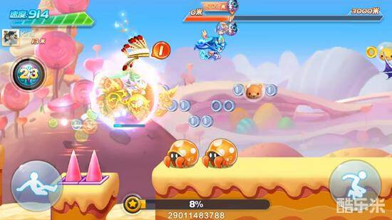 主动技能的3次使用时机固定,所以在其他时段跑的时候要注意能量的累积。使用地心战熊时比较简单,周期性的发怒带来大量能量,只需钻火圈就能获得长时间的加速,看准时机先减速再钻火圈然后冲刺,把握不好的就直接钻火圈后冲刺。