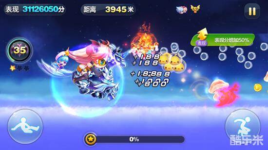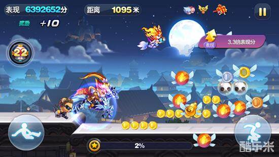 酷跑国的经典玩法。奖池坐骑夜龙马,在多人模式中的表现要强于大多数坐骑,在单人模式中,夜龙马属于纯粹的超级奖励流坐骑,其酷跑模式技能只有超级奖励关得分加成,而不是奖励关得分加成,在超级奖励关中能获得大量魔法蜉蝣带来高分。