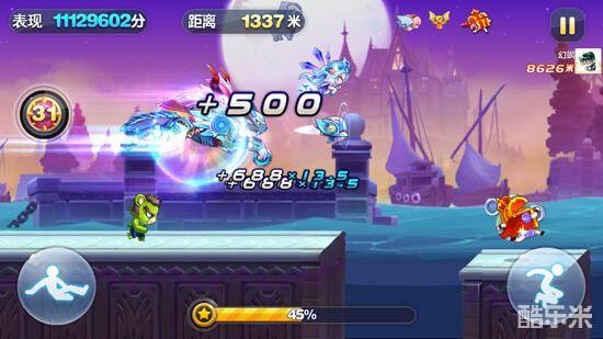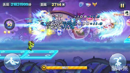机甲云豹的搭配,短爆跑法非常简单,都是奖励关内不用技能,出了超级奖励后,若前方障碍少,就多跑几步再开技能,若障碍增多,那么就直接发动技能冲刺,卡滑放技能能冲的更远。进入穿越奖励后,不要踩加速带,这样通过就能带出兔子,再冲刺就能让兔子丢出海量飞星。