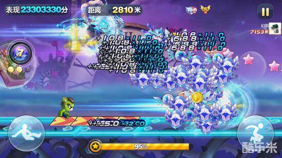 这款钻石坐骑的性价比极高,得分效果也一直领先于大多数坐骑,踩顶方块能获得3色核心,每一种颜色都能带来一种特效,蓝色旋风涡轮带来的磁铁效果只会吸附一般钱币和飞星,不会吸附道具,绿色的急速光翼能让机甲云豹获得翅膀,提升奔跑速度。