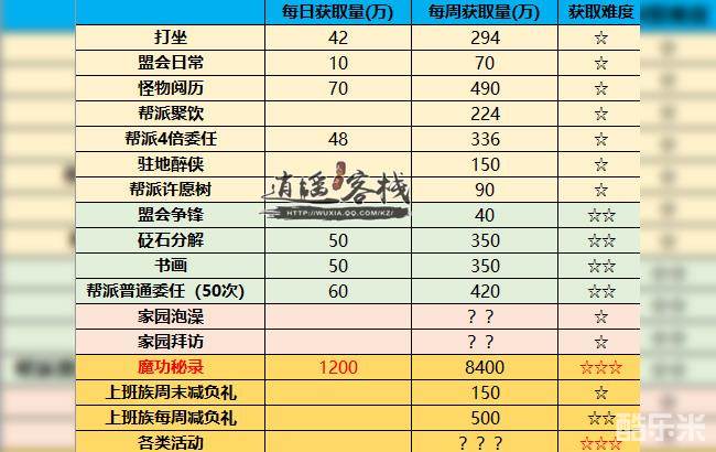 下表列出了当前版本中修为获取途径(如有错漏欢迎评论区中留言)