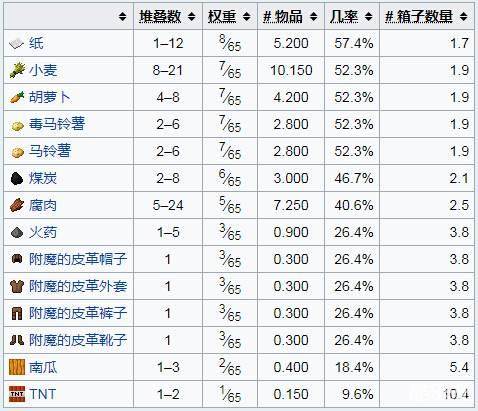 每个沉船补给箱子包含3–10叠物品,并伴有以下的分布:
