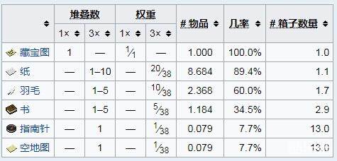 每个沉船地图箱子包含2组1与3叠物品,并伴有以下的分布: