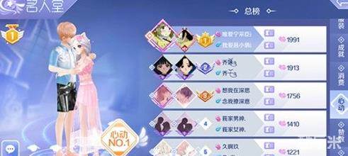 另外QQ炫舞手游中的名人堂,还有属于情侣的心动值排行榜,玩家可以看到当前大区的情侣心动值的名次。情侣间的心动值还是比较难获得的,记得每日去完成获得情侣之间的心动值任务。