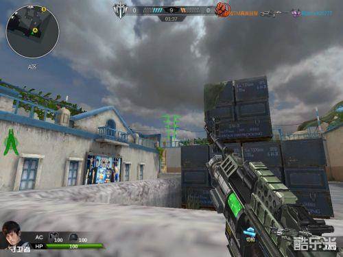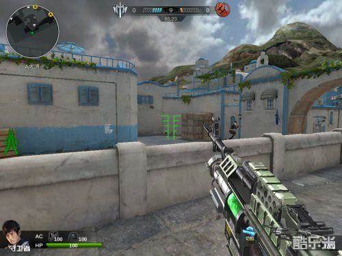 除了进攻以外,幽冥毒王同样适合进行防守,我们还是拿这张全能的海滨小镇地图进行举例。在A小道可防守3个位置,分别是小道、B1、小道远点。我们可以先扔闪光弹之后,切换到毒液弹模式进行探点,看看小道和小道远点是否有敌人进攻,如果有敌人就可以使用毒液弹进行喷射的同时扫射敌人。如果没有敌人也可以跳到箱子上看B1,如果B1有敌人进攻,我们就可以向里面喷射毒液弹,毒液拥有持续掉血效果,所以敌人踩到毒液后的移动速度会变慢。