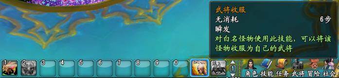 各位筒子在华丽丽的诞生在新手村之后,我们就拥有了几个基本技能,其中一个就包含了“武将收服”。