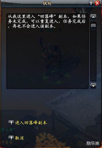 在弹出的提示里,点击进入回落峰副本。