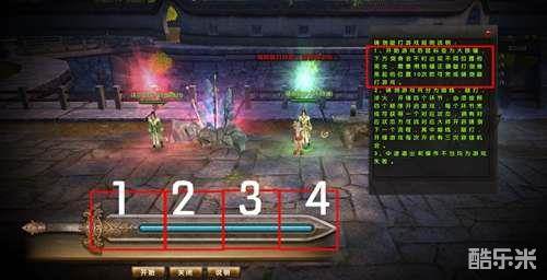 第三个NPC淬火大师,只要根绝剑身上的有限时间内。使用鼠标,点击左右两个方向箭头,保持水桶里的水,不要向另外一方倾斜的太严重,即可过关。