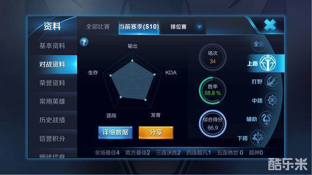 中单:中单最大的发挥空间是团战,即便你团战打出了成吨的伤害,但由于单人作战能力较弱,带线推塔、入侵控龙、抓人单杀这些掌控节奏的因素较难做到,不容易把握大局。也就是容易出现团赢了没人推塔,没人反野,没人打龙的尴尬境地。而且所谓中路万人蹭,有事没事中路团,有事没事各路蹭线,中路刷野又慢,导致很难做到经济碾压。玩野核玩战士我可以一波绕后一个人切死对面双C,草丛蹲一波单杀对面来收BUFF的打野,从而一波节奏到手,但是常规中路这些都没法做啊。因此我觉得是单排最依赖队友,也就是最难上分的位置。当然也可能是我中单玩得菜,不过以我61%+的单排总胜率,以及中单输了12把里8把败方MVP来看,应该还过得去,8把败方MVP并不是想说都是队友坑,只是想证明我至少做到了一个合格中单该做的事,奈何无法掌控局势所以还是输的多。