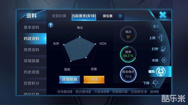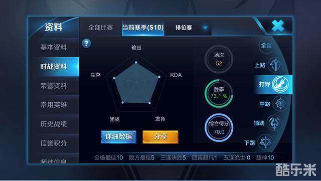 得出的结论是在星耀-王者低星分段单排上分从易到难的位置是:打野>辅助>边路>中路