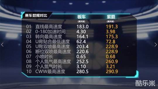 从上图我们可以看出,紫爵的漂移性能非常优秀,耐撞属性也相当不错,十分适合弯道多的高难度地图。