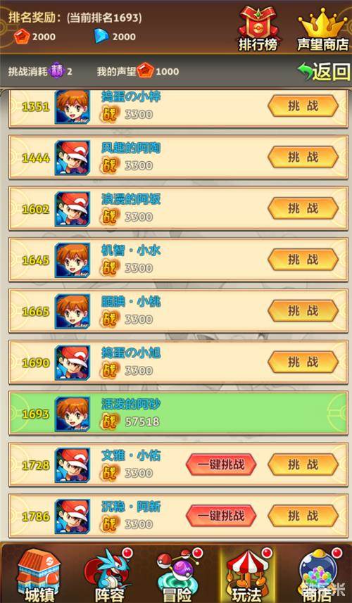 在竞技场,我们比竞技,争排名,战斗胜利除了有丰盛的奖励可拿,竞技得到的声望还能在声望商店中换取其他奖励。当您的排名进入前3000,每次名次提升可是还有钻石奖励呢~