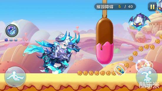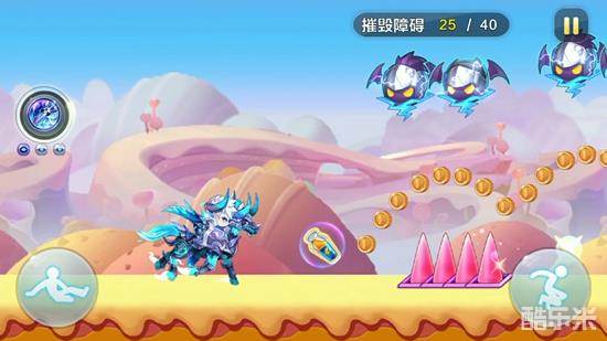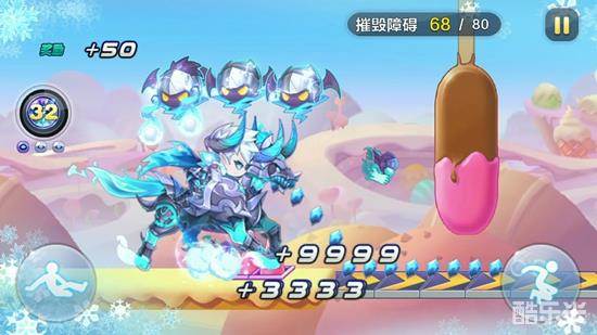 本关卡只要及时吃到巨化道具,一般在达到一碎片目标之后,释放一次角色技能就可以了,在技能结束之后,又会遇到巨化道具,继续吃道具进行巨化。玩家在本关卡中挑战,大部分都在巨化状态,所以不需要刻意躲避障碍物,只要防止掉坑就可以了。