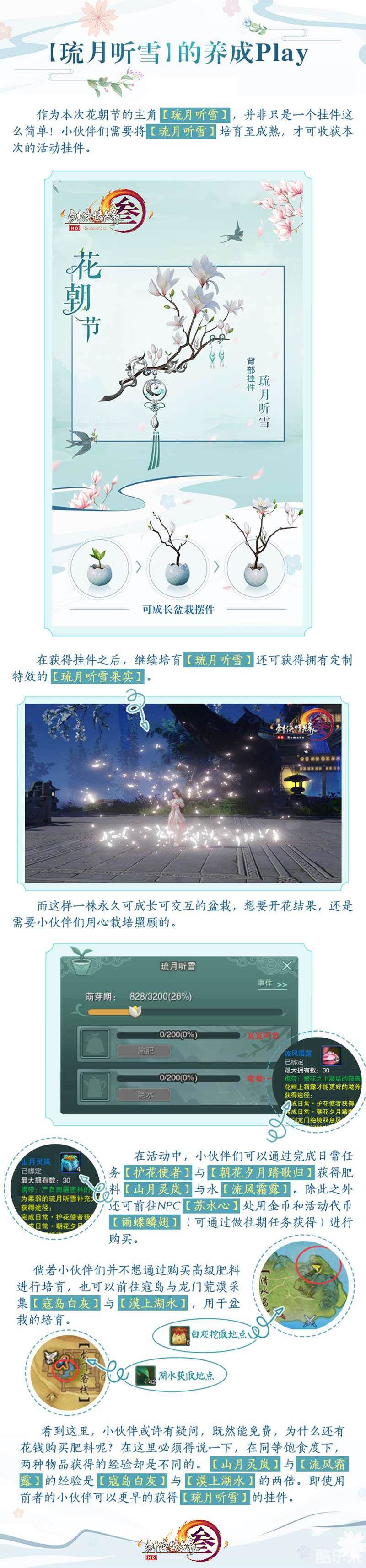 春分时节,花朝献礼。《剑网3》花朝节活动正火热进行中,侠士参与热情一度高涨,活动首日上线率更是提升了20%之多!为了让侠士们更好地参与到活动当中,特地为侠士们准备了一份正经的“花朝节”攻略。