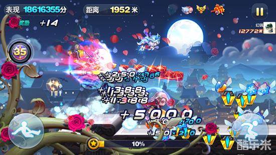 伯爵夫人带满级的紫晶皇冠可以增加技能冲刺的持续时间,也意味着搭配喷射战机,在奖励关外卡滑放技能可以飞出更远的距离,辅以喷射战机的冲刺得分加成,破障获得的大量飞星,得分比能达到1:9900左右,用技能时注意避开奖励关和巅峰挑战。