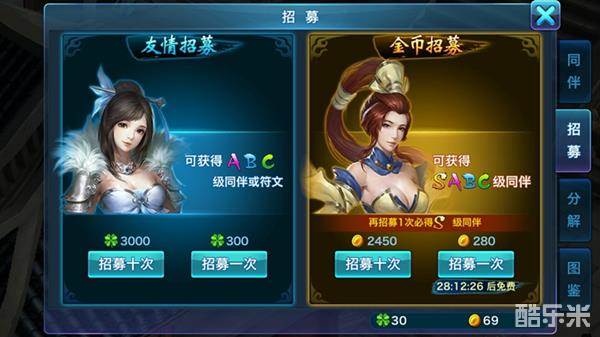 伙伴获得主要方法是靠招募伙伴,凌绝峰、历代名将、武林盟主、野外首领