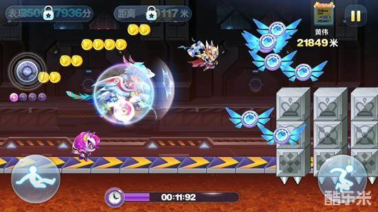 首先是角色的选择,推荐用闪电艾伦和星际少年,闪电艾伦有1次复活机会,同时技能CD较短,2个闪电就能触发小技能,4个闪电就可以冲刺,用这个角色建议跑巅峰,这样可以跑的更快,而且这个角色得分能力也很强。