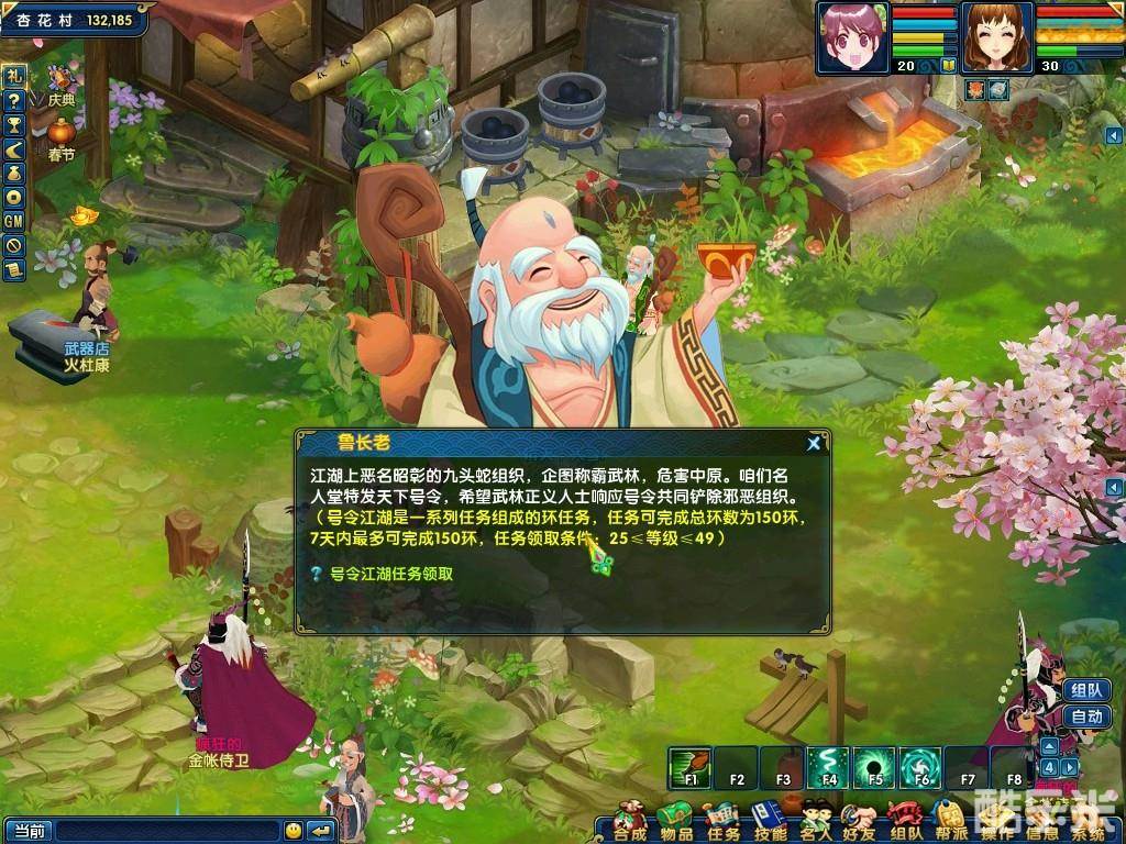 整个新手任务共分为杏花村、少林、唐门三个环节,完成全部的新手任务后可直接升至25级。