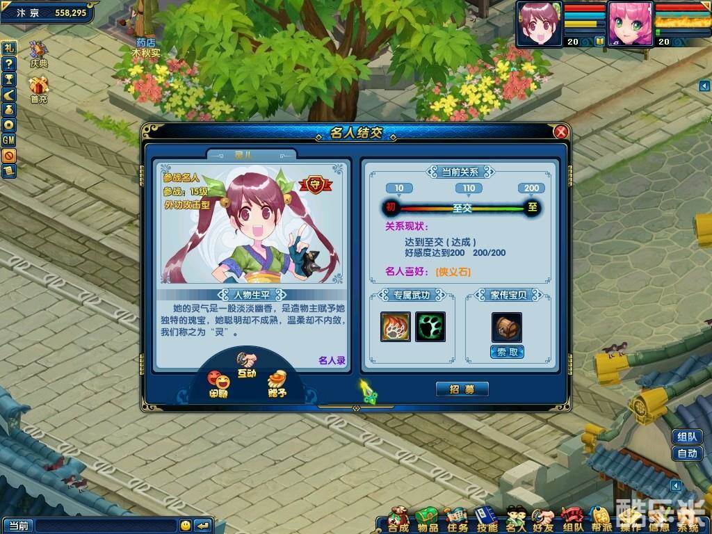 完成新手任务后,玩家可以开始进行结交名人,使用Alt+R组合键可以打开名人录界面,每个玩家都可以去与携带等级小于等于角色等级+5级的名人交互,从而提升好感度,当玩家与名人的好感度达到一定的程度时,玩家将可以携带该名人出战。