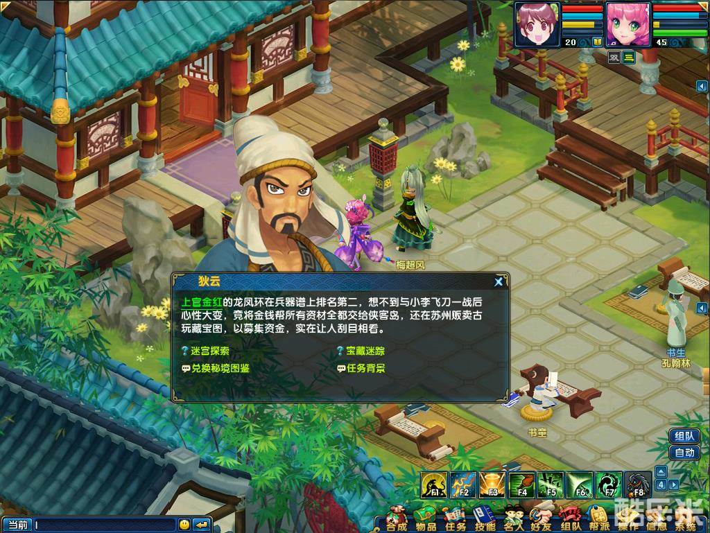 40级可以汴京狄云(153,193)接到宝藏迷踪的任务,打开宝图可获得各种好东西包括通宝、银票、名人好感度任务、野怪等。也可以直接到苏州上官金虹处用银两或者红玉换取藏宝图,同时也可以使用五宝道具到汴京狄云兑换高级宝图秘境图鉴。