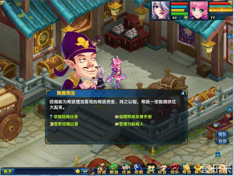 玩家可以在帮派中(通过汴京帮派传送NPC 坐标520,187进入自己帮派)接取跑商任务,获得可观的经验银票和帮贡