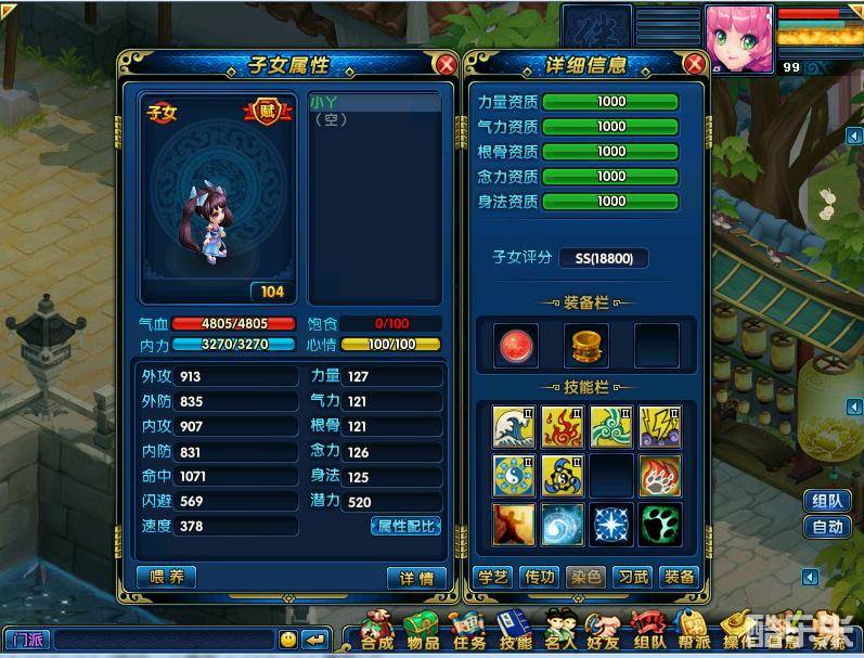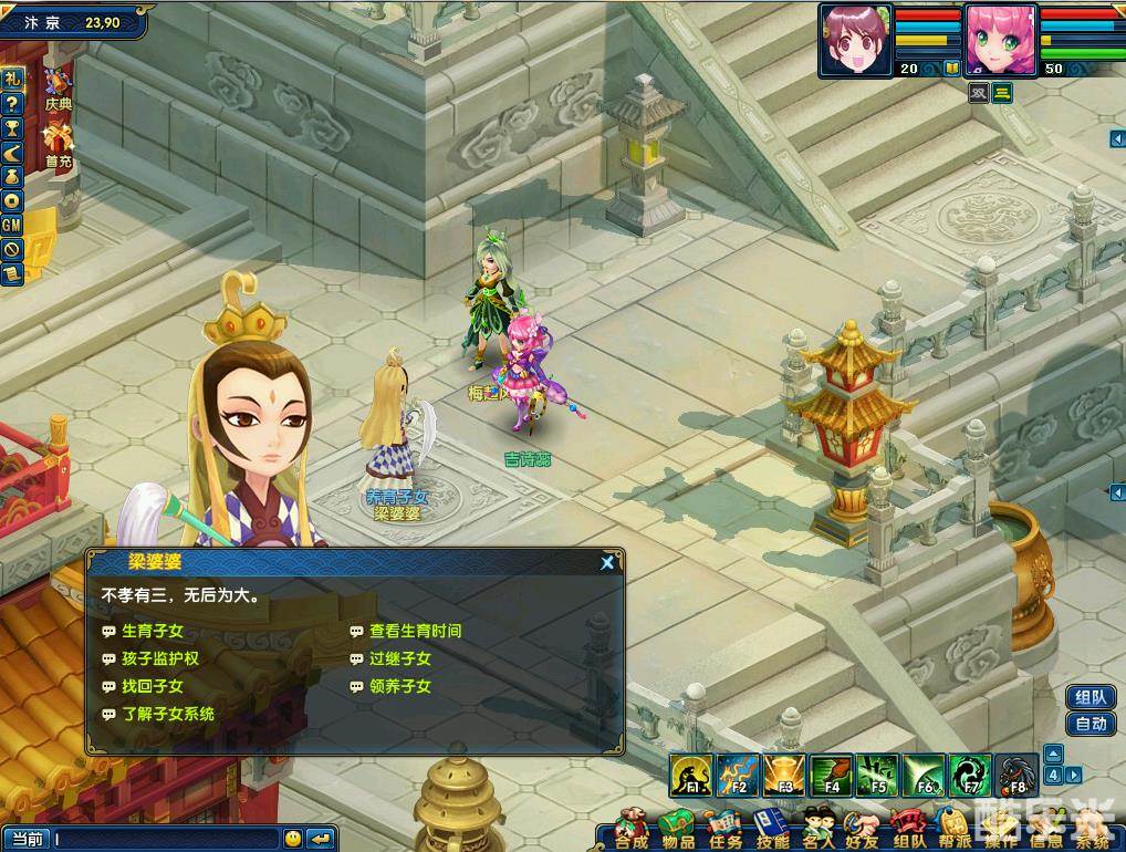 结婚后即可解锁子女系统,生育子女可到汴京梁婆婆(18,93)进行生儿育女。子女可以学习名人技能,可以习武,佩戴手镯与元星珠,是目前唯一能达到11个技能的出战伙伴。