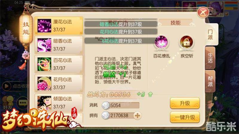 每一个角色都有一套专属的门派技能,同时还会有生活技能和帮派技能,除生活技能和帮派技能中的万兽决外,其余技能提升都能增强角色战斗力。门派技能,可让角色在战场上拥有多种输出选择,等级提升后还能提升伤害或辅助效果。