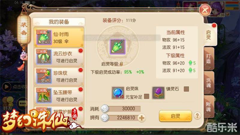 《梦幻诛仙》手游中的角色,可以通过穿戴装备来提升自身各项能力。装备自身存在品质上的差异,品质越高基础属性越好,除此之外,还可以对装备进行养成,让装备更强力。装备养成玩法包括启灵、洗魂和附魂,启灵让装备基础属性得到强化,洗魂可洗炼更适合的属性和更高的属性数值,附魂就是把旧装备的收益转移到新装备上,转移过程存在风险。