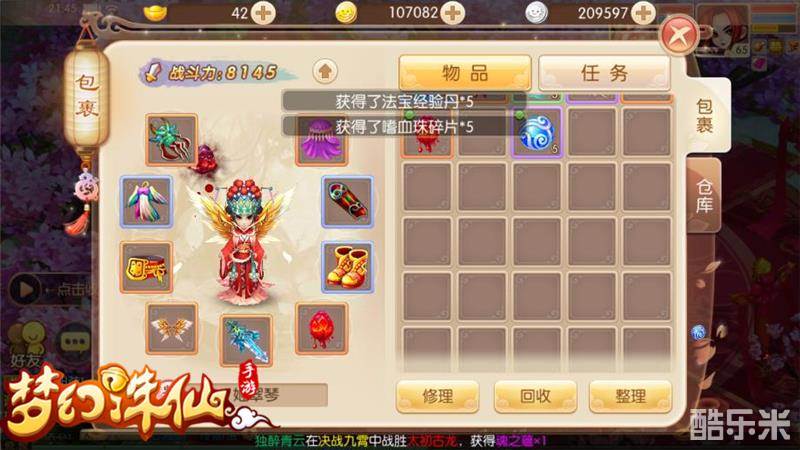 法宝算是特殊装备,装备法宝后也能提升角色战斗力。法宝自身拥有属性加成效果,同时法宝还可以在培养的过程中拥有法宝技能,在某种程度上为角色带来更多的输出选择。在法宝上,还可以镶嵌可提升角色属性的特殊道具。