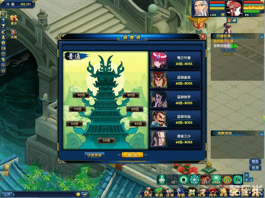 到达60级后可以挑战新的镇魔怪啦,60级的镇魔将有5个boss任你挑战,同时也开放英雄模式的镇魔。