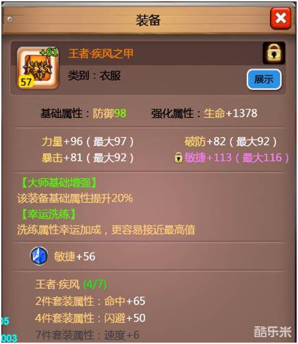 6. 每条属性的加成值,均存在一个上限的最大值,刷出的装备或装备洗炼,均会随机分配一个属性加成值,或高或低;