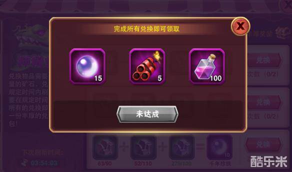 1、兑换:点击兑换可进入神秘兑换入口:只要在刷新时间内完成兑换条件,即可领取右上角那个宝箱里的额外奖励。