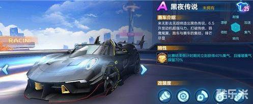 黑夜传说这辆赛车,在漂移和集气上有不错的表现,特性撞墙保留70%的集气,让它在许多急而窄的赛道中拥有不错的发挥。