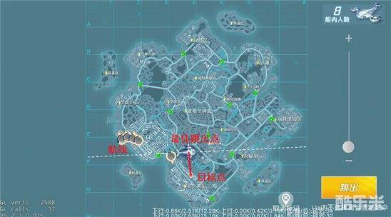 真正的比赛从此刻就已经开始,和队友沟通好迅速根据飞机航线选择好落点,点击地图标记位置,选择最快能到达落点的位置跳出,抢在他人前面获得武器和装备。