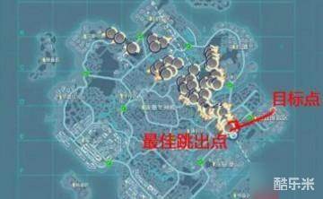 一般来说,目标点与航线的垂线交点就是最佳跳出点。(其实也可根据个人喜好随意跳、跟随队伍跳)最好是直接跳在房子里,反正在接近房子时屋顶会自动隐藏,这样落地就能捡到武器装备了。