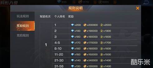 异形入侵是军团系统中的另一个特色的玩法,军团成员在每周一、三、五的晚上可以参与击杀异性的活动。系统会根据军团成员在异形入侵活动中的表现,对参与活动的军团成员进行排名,排名越高的玩家获取到的军团贡献将会越多。